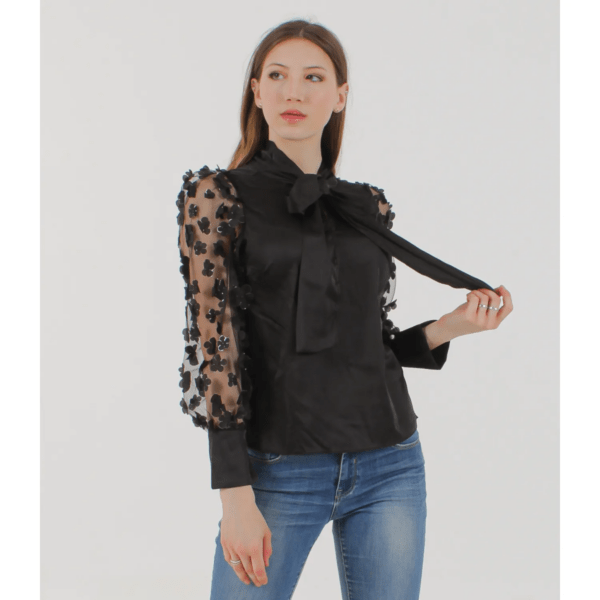 Chemise à Manches Transparentes avec Détail Floral : Élégance Romantique