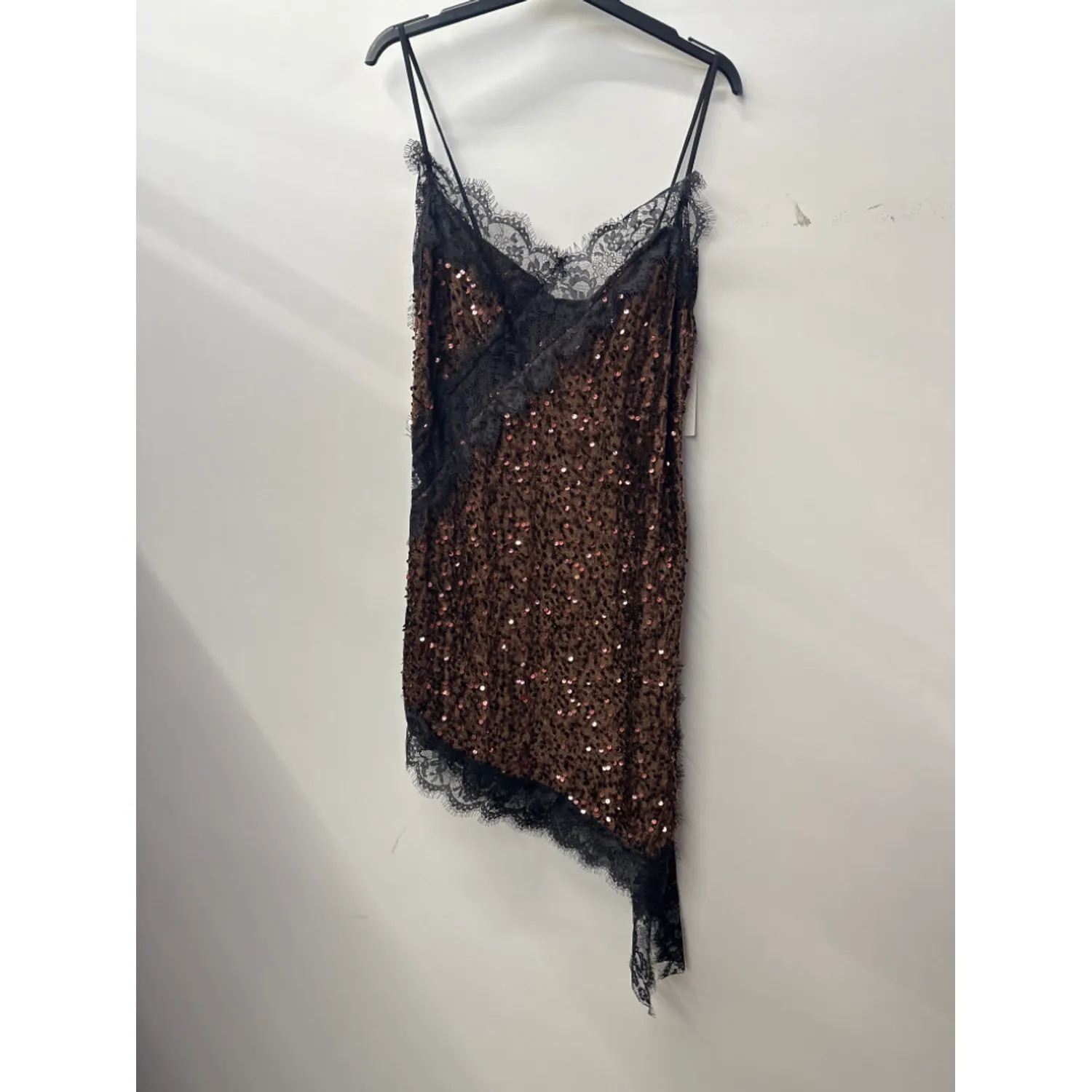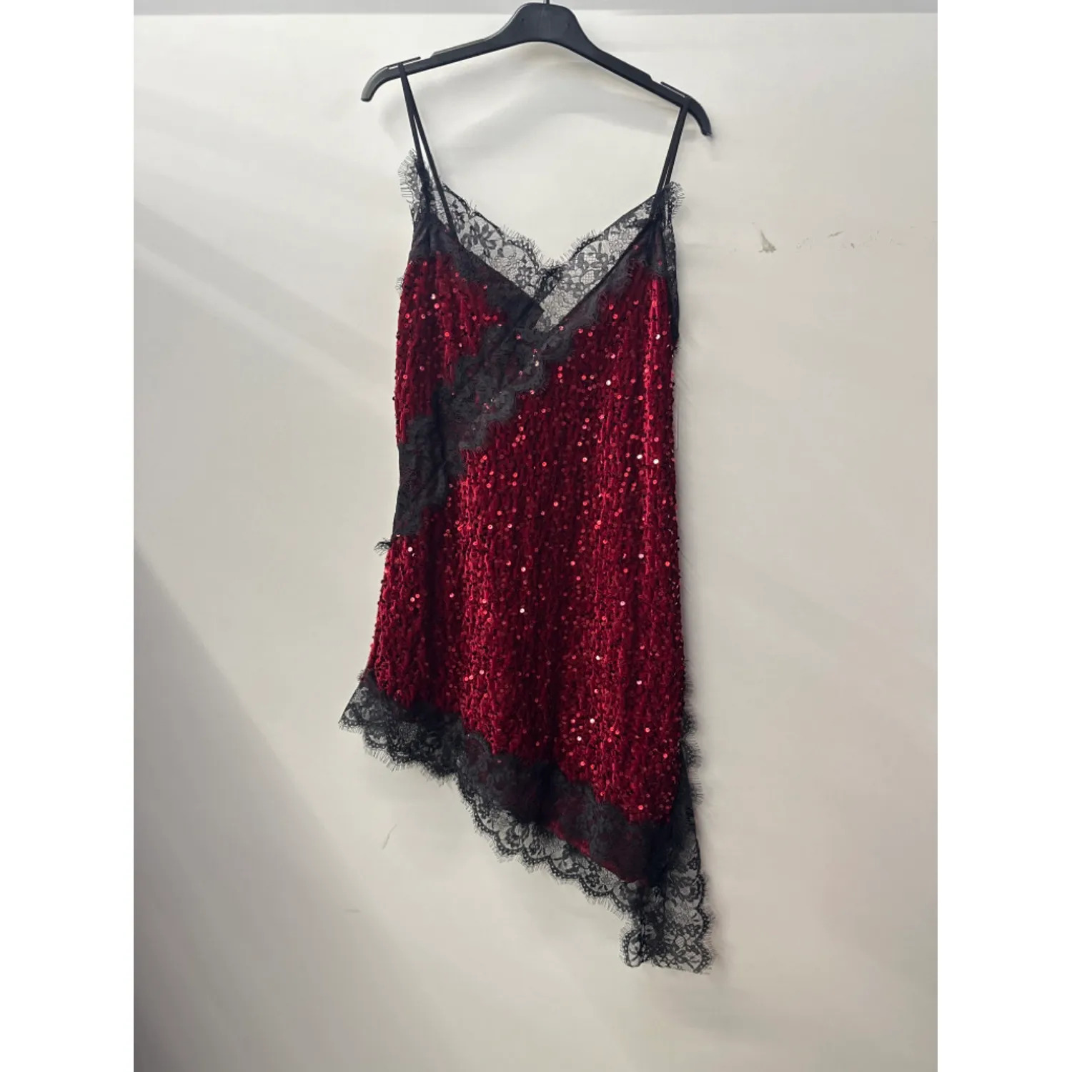 Faites sensation avec ce superbe haut entièrement couvert de sequins, sublimé par de délicates finissions en dentelle noire. Son design asymétrique apporte une touche moderne et irrésistiblement féminine, idéale pour vos soirées, fêtes et événements spéciaux.