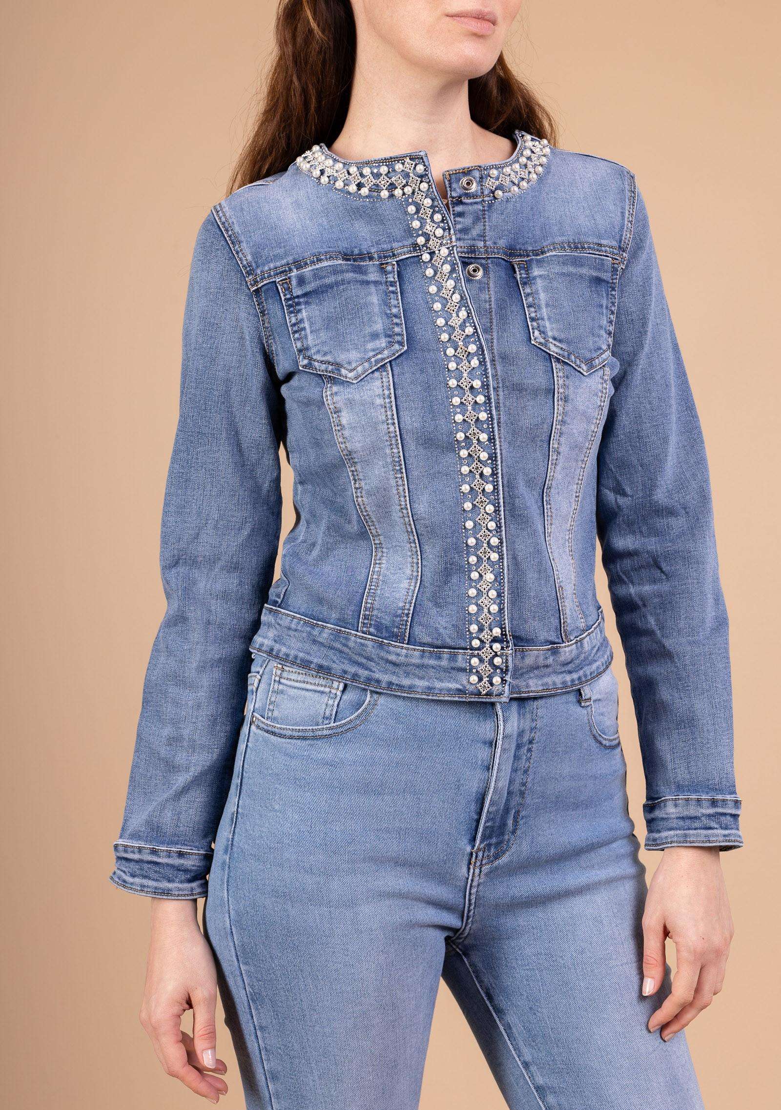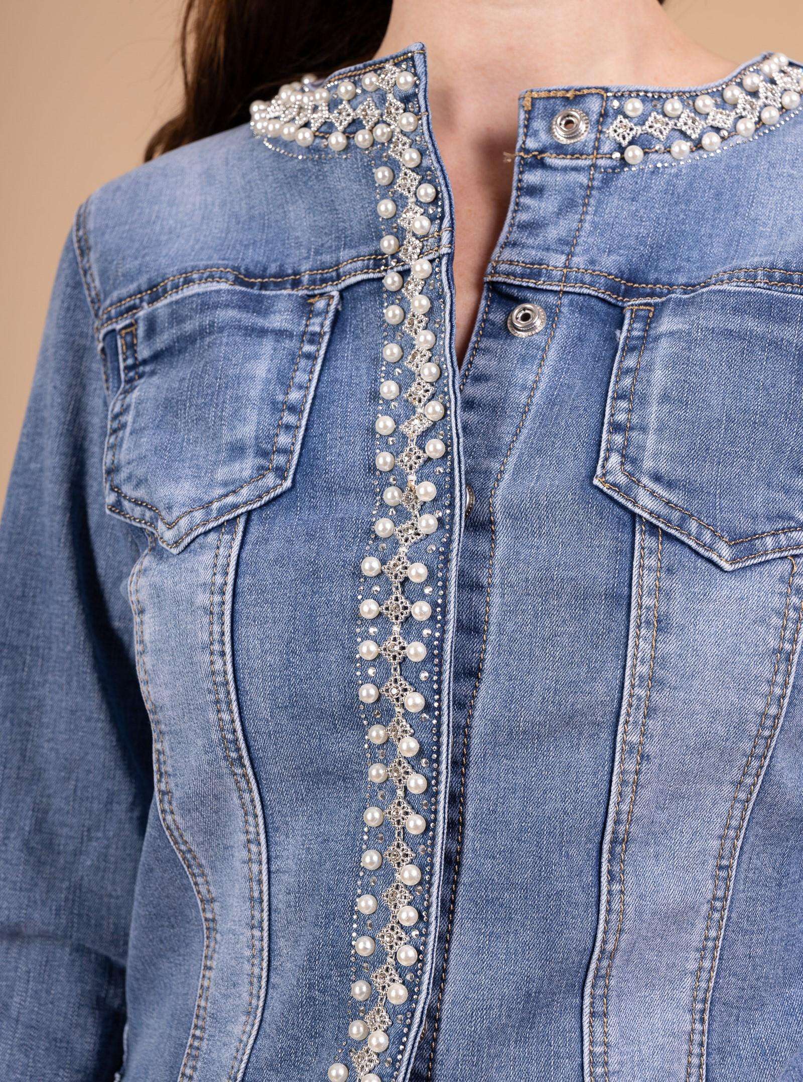 Alliez l’intemporel du denim et l’élégance des détails perlés avec cette veste unique.